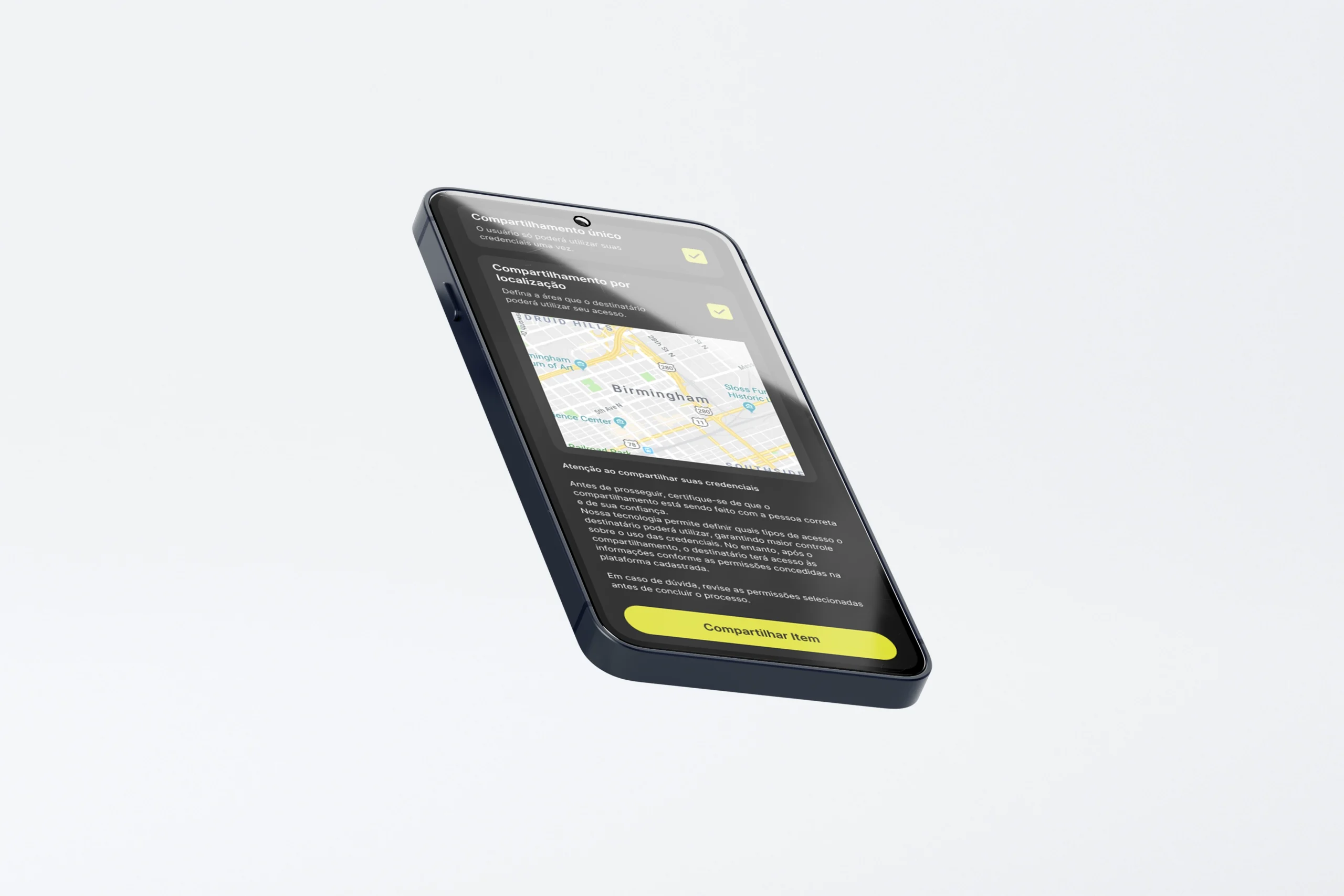 Com essa funcionalidade, o usuário pode selecionar um campo geográfico específico, onde o destinatário só poderá acessar essa credencial se estiver dentro do campo estabelecido